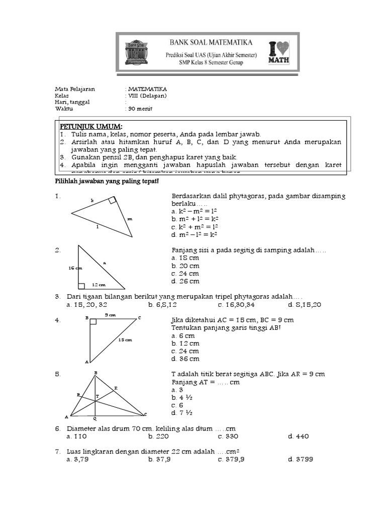 Contoh lengkap soal asesmen kompetensi contoh soal ukk smp kelas 78 lengkap format words.